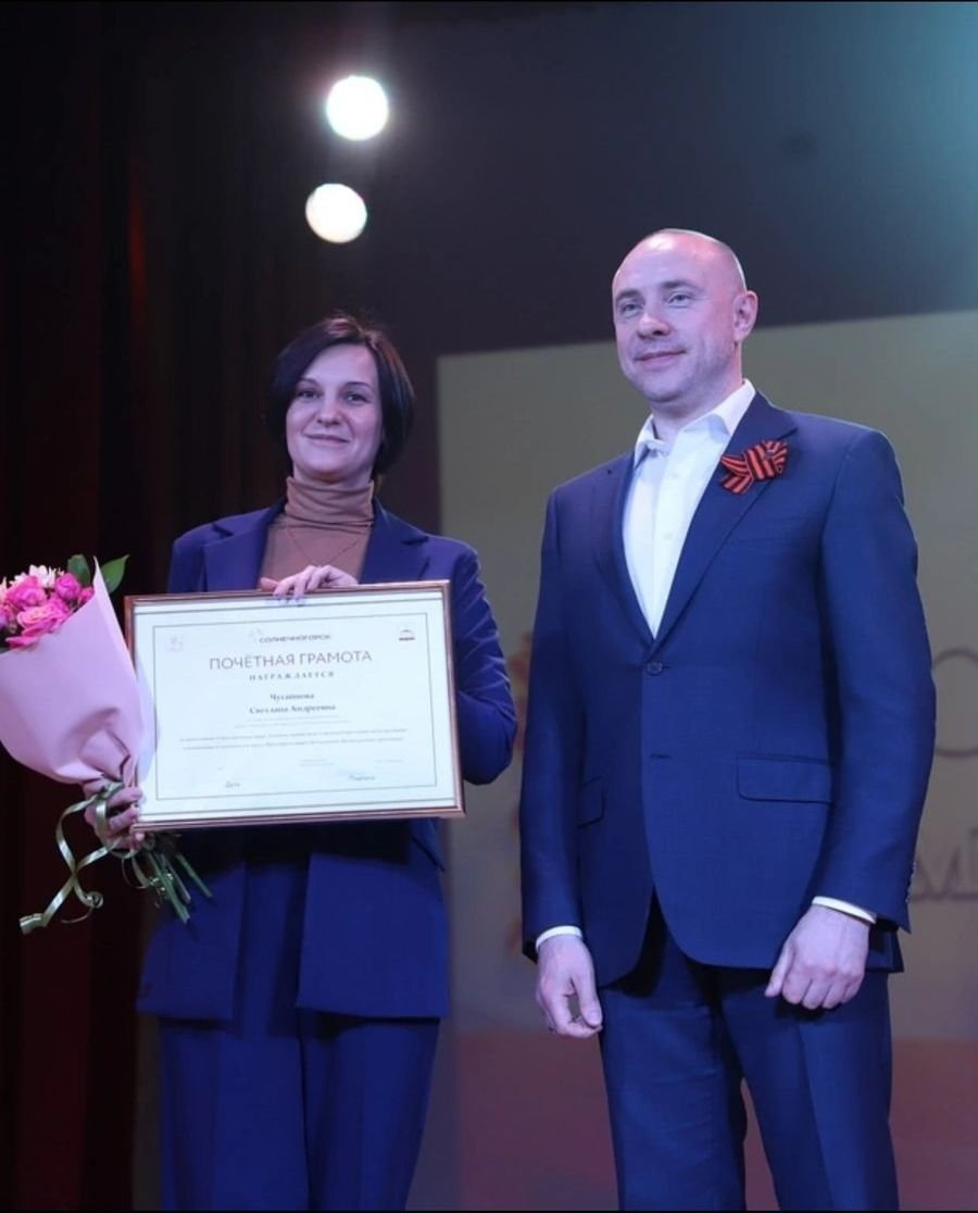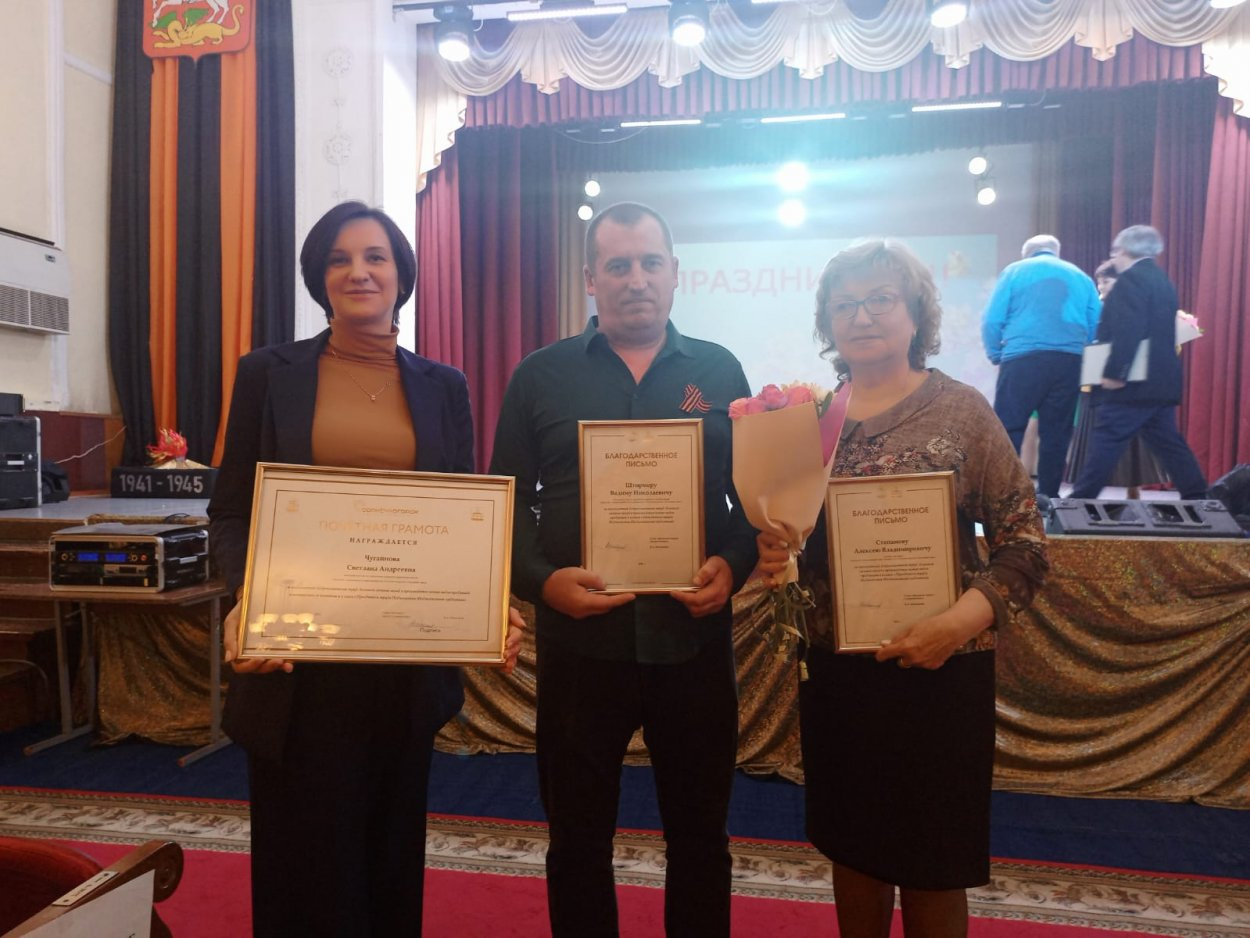 25 апреля 2025 года в городе Солнечногорск в ГЦНТиД "Лепсе" прошел ежегодный праздник «День труда Московской области», где чествовали сотрудников ведущих предприятий и организаций округа, в том числе работников Солнечногорского Стекольного завода. Благодарственными письмами были отмечены начальник УВиРМ Штирмер В.Н. и главный механик Степанов А.В. А начальник УУиРФ Чугайнова С.А. была награждена Почетной грамотой.