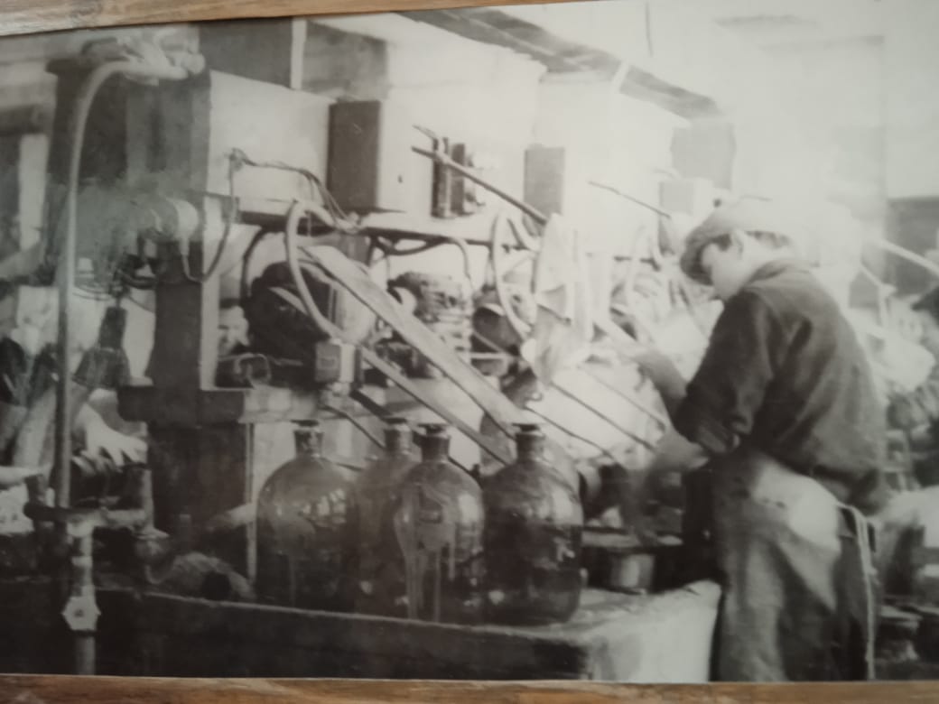 ![]() В 1952 г. заново был построен цех № 1 (оранжевого стекла) с притирным участком, на котором обеспечивалась герметичная упаковка специальных флаконов под быстроиспаряющиеся лекарственные препараты. В 1963 году регенеративная ванная печь № 1 была реконструирована с установкой автоматов АВ-2 по выработке широкогорлой посуды. По решению правительства в 1948 году на заводе стали строиться новые объекты и механизироваться производственные процессы. В 1955-57 гг. введен в строй цех № 2 по выработке бесцветного стекла МТО, где были построены три регенеративные ванные печи с установкой стеклоформующих автоматов АВ-4, АМ6-С. Кроме того, за годы первого этапа реконструкции завода (1948-63 гг.) были построены составной цех мощностью 40 т шихты в сутки, котельная, компрессорный участок, насосная, водонапорная башня и склады. |